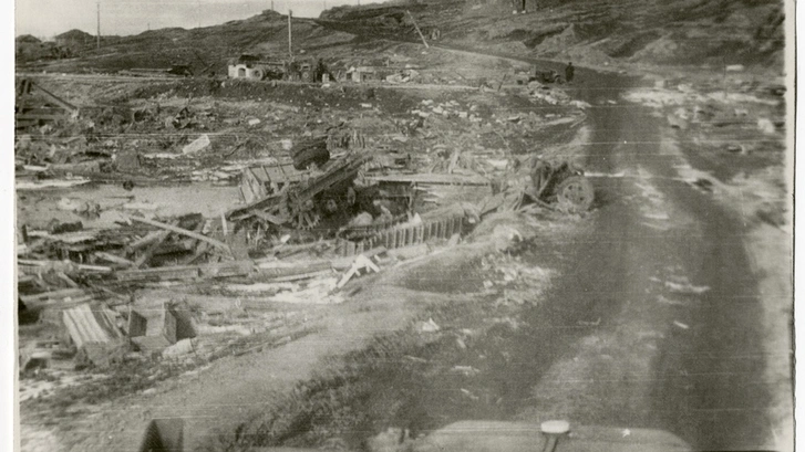 Около 8 часов утра я и другие матросы под командой третьего помощника капитана т. Крывчика на шлюпке приплыли к консервному заводу и тут высадились. На месте города ходили люди, в том числе военные - собирали трупы... Осмотрев место, где находился барак, в котором я жил, никаких признаков (его) я не обнаружил... Никаких вещей, принадлежащих мне, я не нашел - все было снесено. В квартире у меня находилась одежда, швейная машина, сберкнижка с вкладом на 15 тыс. рублей, военный билет, семь медалей...