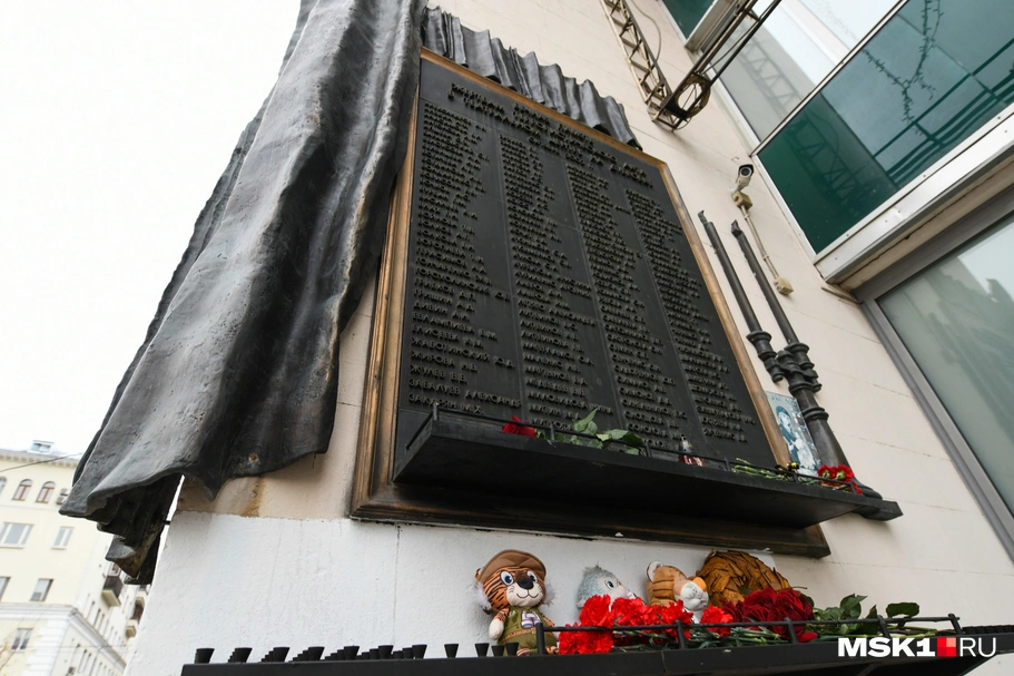 Через год после теракта у входа в театр на Дубровке установили монумент с надписью