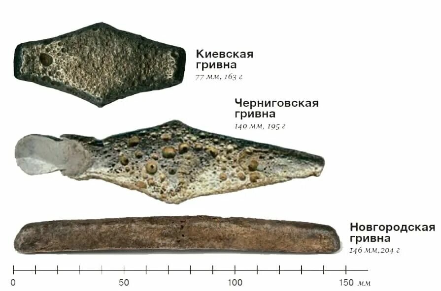 С XII века начался так называемый безмонетный период в истории русского денежного обращения, продолжавшийся до конца XIV века. Нужды международной европейской торговли требовали достойных денежных знаков - и ими стали гривны. Гривна киевская отливалась в открытых земляных формах и представляла собой серебряный слиток ромбической формы весом 158 г., длиной 75 мм., шириной 35 мм. Гривна новгородская имела форму серебряной палочки весом около 200 г., длиной 135 мм., шириной 10 мм., высотой 12 мм. В XIII веке этот слиток стал называться рублем. Рубли отливались в два приема и имели литьевой шов или рубец. Древнерусской слово "рубь" означает шов или кайму и не имеет никакого отношения к глаголу "рубить". Нужды мелочной местной торговли обслуживали различные заменители денег: бусы и меха. Связка мехов выполняла роль монеты.