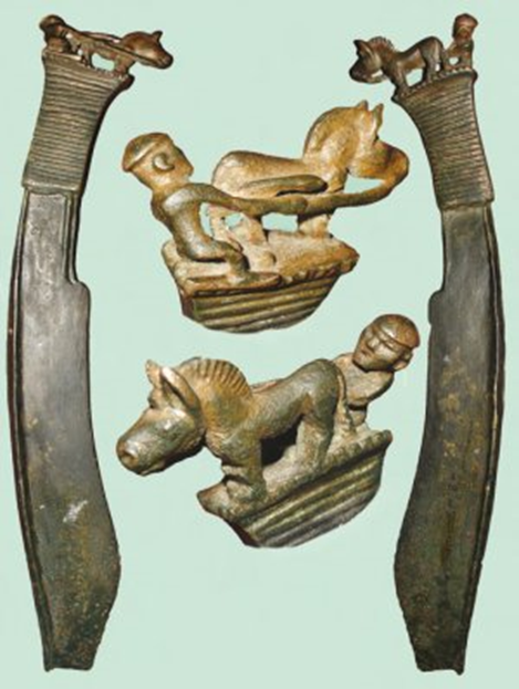 Археологи решили проникнуть в захоронение через свод и были вознаграждены - над центральным камнем, запечатывавшем гробницу, были найдены остатки двух мечей, наконечник стрелы и фрагменты конской сбруи. Все предметы имели следы горения.