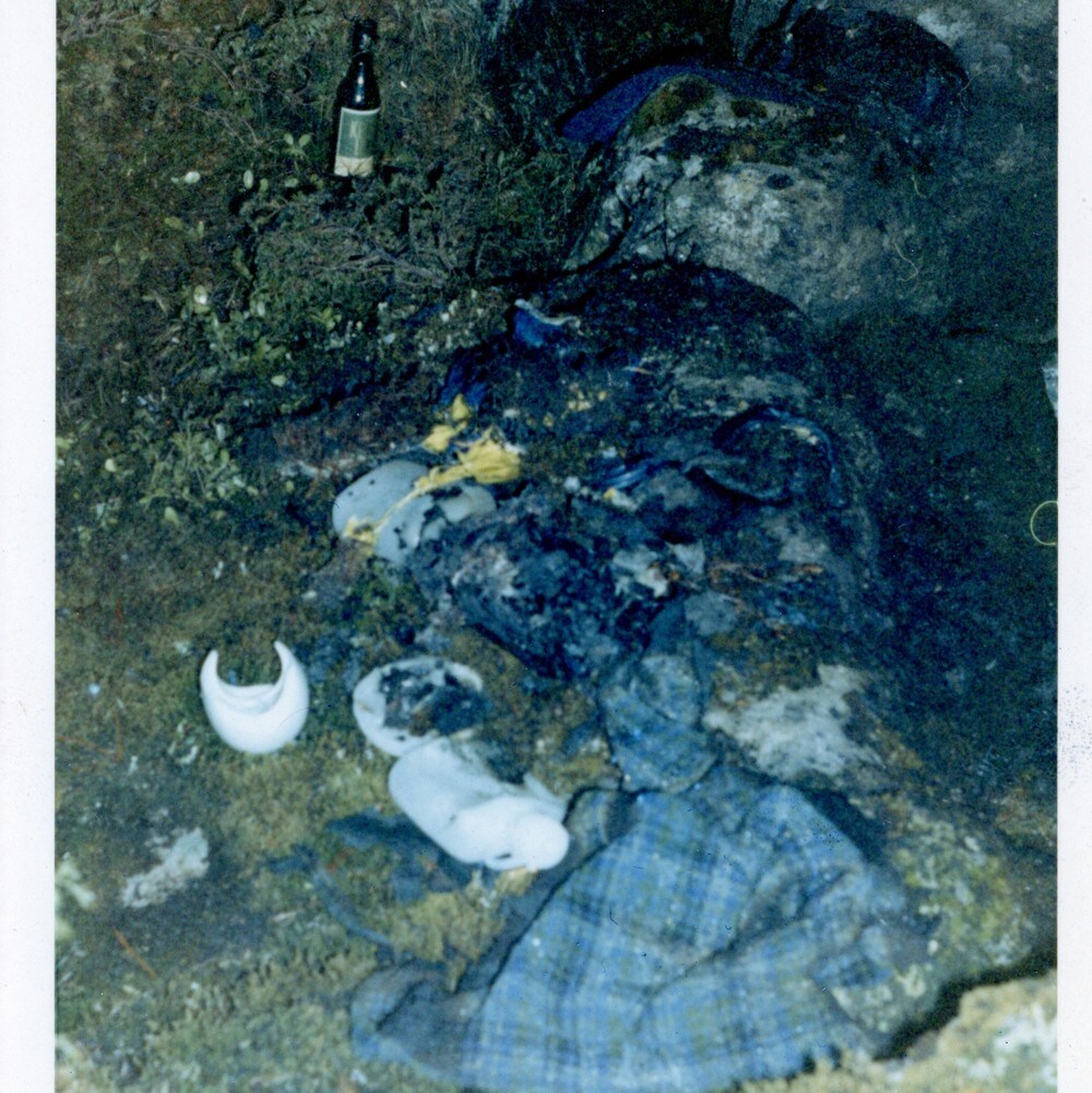 На ч.б. фото в кадр попал еще какой-то "мусор". Не факт, что имеет отношение к этой истории, и не факт, что бутылка; но похоже, что еще одна бутылка и бензин мог быть в ней? Если бы горючая жидкость была в пластиковой таре, то, Вы, Сергей, правы - вряд ли бы пробки были закручены (тем более самоубийцей) - или они (пластиковые фляги) лежали бы подальше от места костра, или сгорели бы, находясь в такой близости к огню. Пары бензина и все такое. Или нет? *DONT_KNOW*